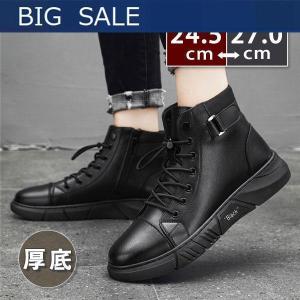 ブーツ メンズ シークレットシューズ カジュアルシューズ ハイカット 英字 ビジネス 厚底 無地 通学 通勤 春 秋 冬 ブラック ワーク 快適
