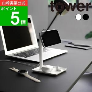 ( トレー付きスマートフォン充電スタンド タワー ) tower 山崎実業 公式 オンライン 通販 スマホ 携帯 充電 Airpods イヤホン apple 対応 MagSafe
