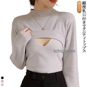 授乳服 ニット セーター マタニティ プチハイネック 授乳用 マタニティウェア トップス 秋冬 カットソー 授乳トップス 部屋着 妊娠 産院 子育て