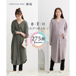 パジャマ マタニティ ママ 産前 産後 授乳服 袖ロールアップ 前開き ルームウエア ワンピース + レギンス M/L ニッセン nissen