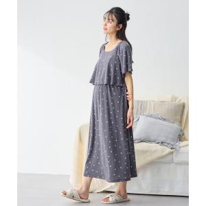 マタニティ 配色メロウフリル パターンメッシュネグリジェ/ ワンピースパジャマ(産前・産後対応 マタニティ&授乳服 ルームウェア)
