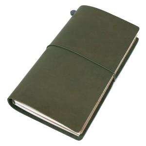 Collasaro レザーノート 本革 手帳 メモ帳 (オリーブグリーン, M, レギュラーサイズ, 220 x 125 mm)