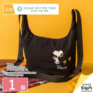 スヌーピー シュガーバターの木 ショルダーバッグ 1個 PEANUTS ピーナッツ バッグ グッズ かばん 大きめ 旅行 刺繍 ワンポイント たっぷり 大容量 黒