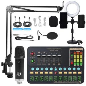 オーディオミキサー 配信機材セット オーディオインターフェース USBコンデンサーマイク LEDリングライト ゲーム実況 配信 生放送 ボイ