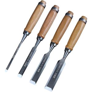 木工平ノミ 4本セット 木彫り クロムバナジウム鋼 のみセット フラット 彫刻 切れ味抜群 プロ仕様 木工用 大工道具 DIY 面取り 鑿