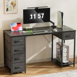 GTRacing デスク 机 引き出し付き モニターアーム対応 カーボン調 収納便利 頑丈設計 コンパクト 組み立て簡単 ゲーミングデスク 勉強机 pcデスク 耐久性 耐水性