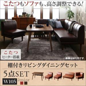 こたつもソファも高さ調節できる 棚付きリビングダイニングセット 5点セット(テーブル+2Pソファ1脚+1Pソファ2脚+コーナーソファ1脚) W105