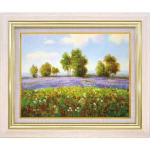 油彩画 洋画 肉筆絵画 セレクトアート (額縁 フレーム付き) サイズF6号 エマ 「ラベンダーの丘」 8116 F6 アイボリー