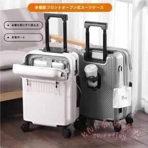 多機能スーツケース 機内持ち込み フロントオープン KNK(株) 大容量 前開き USBポート付き 充電 カップホルダー付き 軽量 キャリーケース 出張 旅行