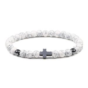 ブレスレット クロス ストーン メンズ 4mm ナチュラル ヘマタイト ライス ビーズ ボーイフレンド ギフト ジュエリー ヨガ