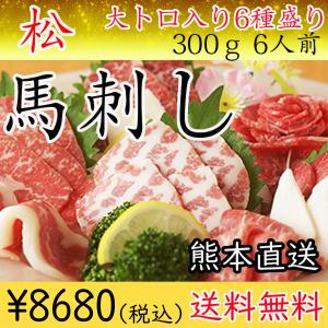 馬刺し 熊本 国産 松 300g 大トロ 特選赤身 ヒレ等 6種盛り 馬刺しタレ付き 約6人前