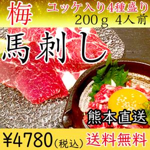 馬刺し 熊本 国産 梅 200g 赤身 ヒレ フタエゴ ユッケ タレ付き 4種盛り 約4人前