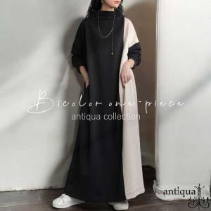 バイカラーワンピース レディース ロング 長袖 送料無料・再入荷 メール便不可