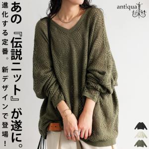 ドルマンニット レディース トップス Vネック 透かし編み・再入荷 メール便不可