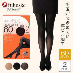 タイツ 黒 黒タイツ 60デニール 2足組 福助 公式 レディース デイリー満足 無地 パンティ部ソフトサポート設計 マチ ネーム付 790-1012 フクスケ fukuske