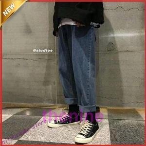 クラシカル ハイウエスト ウエストゴム ワイドストレート デニム レディース ジーンズ ゆったり シルエット デニムパンツ お洒落 縛り紐