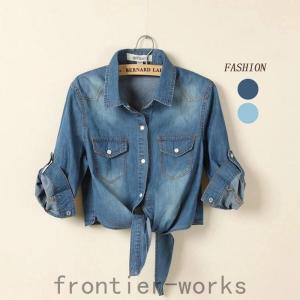 【大特価】シャツ デニムシャツ レディース 羽織り 前結びシャツ 半袖 長袖 前縛り ブラウス ショート丈 ス ロールアップ カジュアル 大きいサイズ