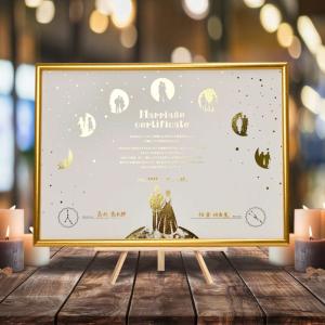 結婚証明書 署名 サイン 星 星空 星座 月 金箔 箔押し 金 ゴールド フレーム入り 結婚式 ウェディング「二人の星座付き 結婚証明書 星空と月(ホワイト)」