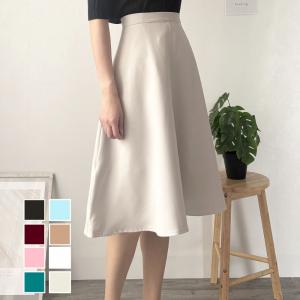 ひざ丈フレアスカート ハイウエスト 無地 脚長 大人 可愛い シンプル レディース