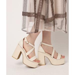 サンダル ドット柄クロスリボン厚底サンダル美脚脚長 レディース