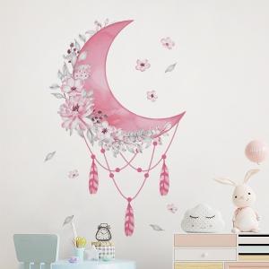 ウォールステッカー 花 月 おしゃれ 植物 羽根 羽 ピンク 南国 子供部屋 女の子 ウォールシール ネイティブ サーフ 西海岸 はがせる オルテガ アロハ 姫 vr03015