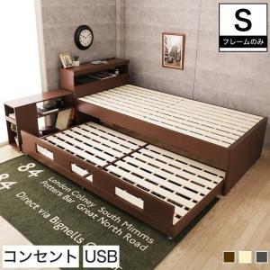親子ベッド シングル 木製 ツインベッド ペアベッド 2段ベッド すのこベッド ベッドフレーム 棚付き シェルフ USB ベット
