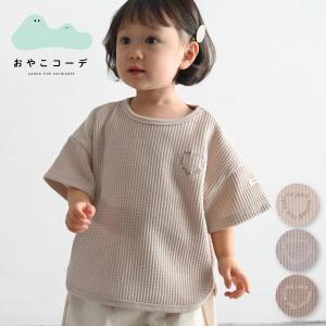 PUPPAPUPO ラウンド 半袖 Tシャツ ラフリーワッフル シンプル キッズ ベビー レディース トップス 春 夏 80 90 100 110 子供服 男の子 女の子 親子 プッパプーポ