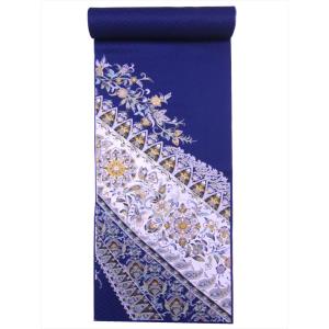 ポリエステル 洗える 付下げ反物 ts-31 濃紺地・更紗柄【訳有り】