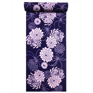 浴衣 反物 No.44 キク柄・濃紺地【訳有り】