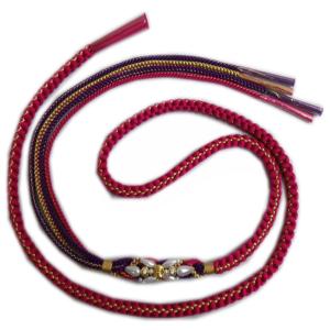 【訳有り 少難あり】 帯締め 帯〆 パールビーズ飾り付 正絹 ワイン紫 先割れ 3色使い 振袖 成人式 着物 帯じめ 振袖用