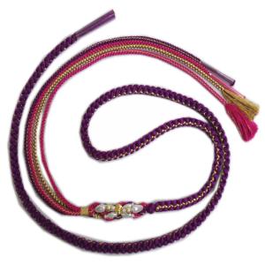 【訳有り 少難あり】 帯締め 帯〆 パールビーズ飾り付 正絹 紫 先割れ 3色使い 振袖 成人式 着物 帯じめ 振袖用 紫色