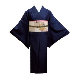 【訳有り 少難あり】 色無地 着物 洗える 袷 濃紺 M 単品 きもの プレタ 女性用 レディース 紺色