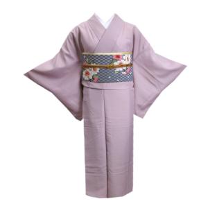 【訳有り 少難あり】 色無地 着物 洗える 袷 軽装帯 付け帯 2点セット 薄あずき S M きもの プレタ 作り帯 つくり帯 女性用