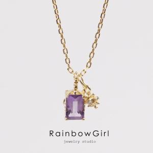 ネックレス レディース アメジスト 2月誕生石 四角 3way 14kゴールド 人気 女性 誕生日 母の日 お祝いギフト