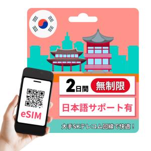 韓国 eSIM 2日間 無制限 (低速なし)5G 4G かんたん設定 SKテレコム 旅行 ビジネス LINE通話対応 日本語サポートあり カード ソウル プリペイド