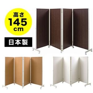 パーテーション 4連H145 キャスター付き ダーク ナチュラル 白 オフィス 間仕切り パーティション 衝立 日本製 高さ145cm 4連 目隠し 予防 移動