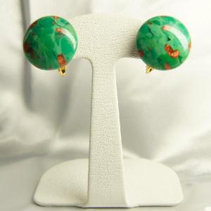 イヤリング ベネチアングラス イタリア製 ボタン 丸 金茶 グリーン 20mm ネジバネ式