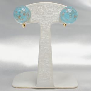 イヤリング ベネチアングラス イタリア製 ボタン 丸 ソンメルソ ターコイズ 15mm ネジバネ式