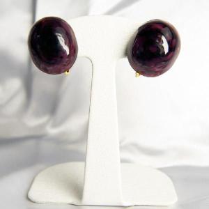 イヤリング ベネチアングラス イタリア製 楕円 オーバル ソンメルソ 紫 ネジバネ式