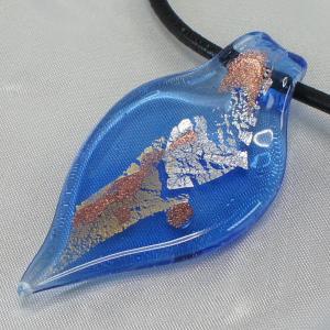 ネックレス ペンダント ベネチアングラス イタリア製 フォリア 青 ブルー 黒革紐 ベネチアンガラス