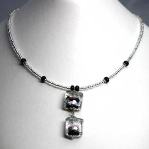 ネックレス ペンダント ベネチアングラス イタリア製 角 デュオ 黒 シルバー ベネチアンガラス