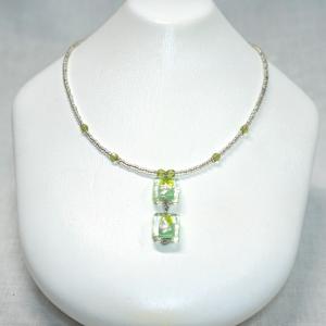 ネックレス ペンダント ベネチアングラス イタリア製 角 パステル デュオ グリーン・シルバー ベネチアンガラス