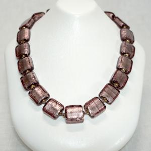 ネックレス ベネチアングラス イタリア製 長方形 50cm 糸結び グレー&薄ピンク ベネチアンガラス