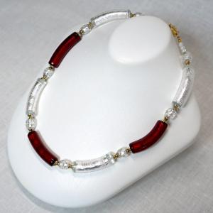 ネックレス ベネチアングラス イタリア製 チューブ マカロニ 赤 銀 ベネチアンガラス