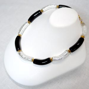 ネックレス ベネチアングラス イタリア製 チューブ マカロニ 黒 銀 ベネチアンガラス