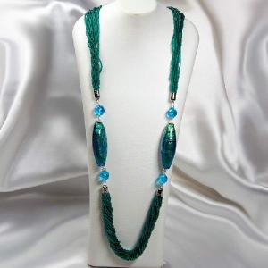 ネックレス ロング ベネチアングラス イタリア製 24連 グリーン ベネチアンガラス