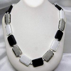 ネックレス ベネチアングラス イタリア製 長方形 50cm 糸結び 白・グレー・黒 ベネチアンガラス