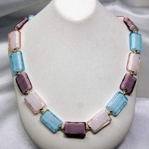 ネックレス ベネチアングラス イタリア製 長方形 50cm 糸結び 紫、薄紫、ブルー ベネチアンガラス