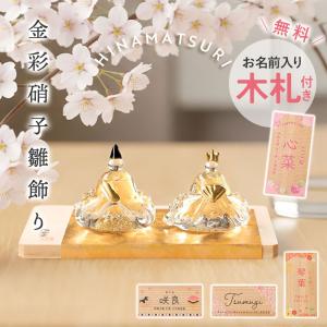 雛人形 コンパクト 名入れ無料 木札 ガラス かわいい ミニ 金彩硝子雛飾り 作舎窯 ひな人形 おしゃれ ひな祭り 名前 札 名入れ 今どき 小さい