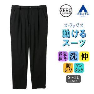 【洋服の青山】裾上げ済み 動けるスーツ スラックス メンズ 春夏秋冬 ブラック 無地 セットアップ 単品 男性 大きいサイズ 洗える 動きやすい シワになりにくい